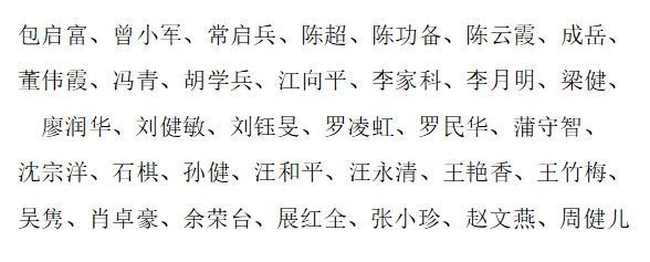 (按拼音顺序排列,排名不分先后)