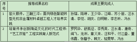 根据《关于做好2026年景德镇陶瓷大学教学成果奖推荐工作的通知》,材料科学与工程学院推荐申报名单如下: