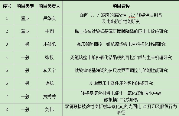 根据《先进陶瓷材料江西省重点实验室开放基金管理办法》及《先进陶瓷材料江西省重点实验室2026年度开放基金项目申请指南》相关规定,实验室组织开展了2026年度开放基金项目的受理、评审工作。经个人申请、材料受理审核、专家评审等环节,现将拟立项项目名单予以公示。